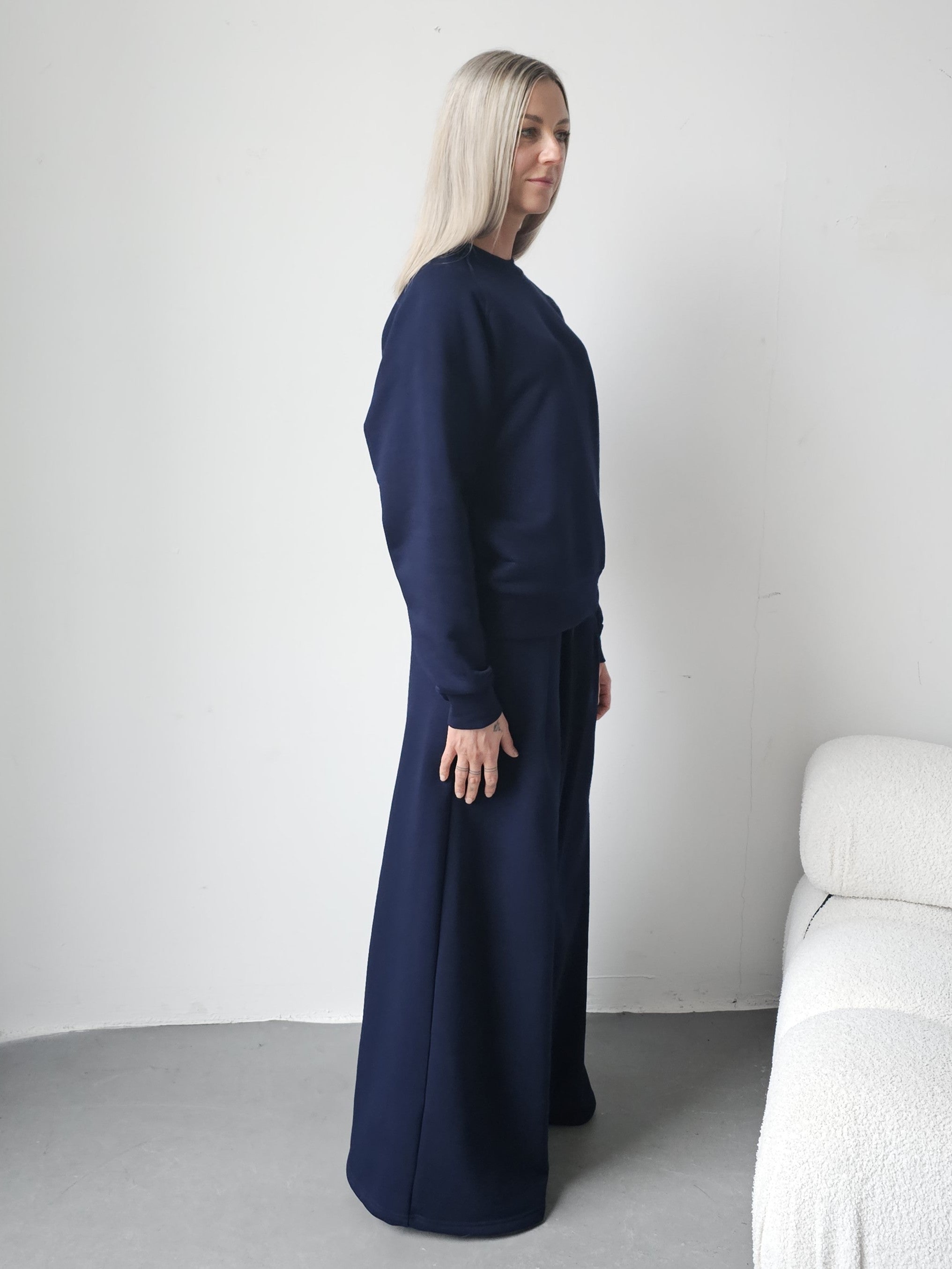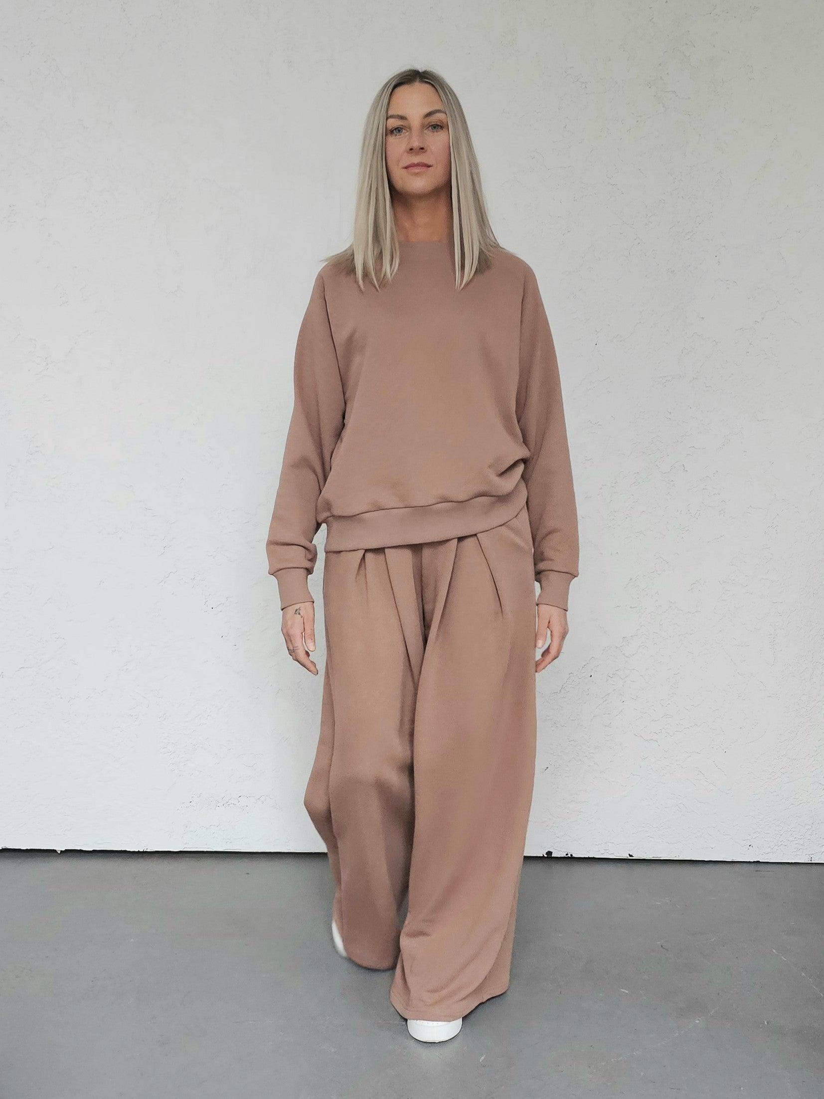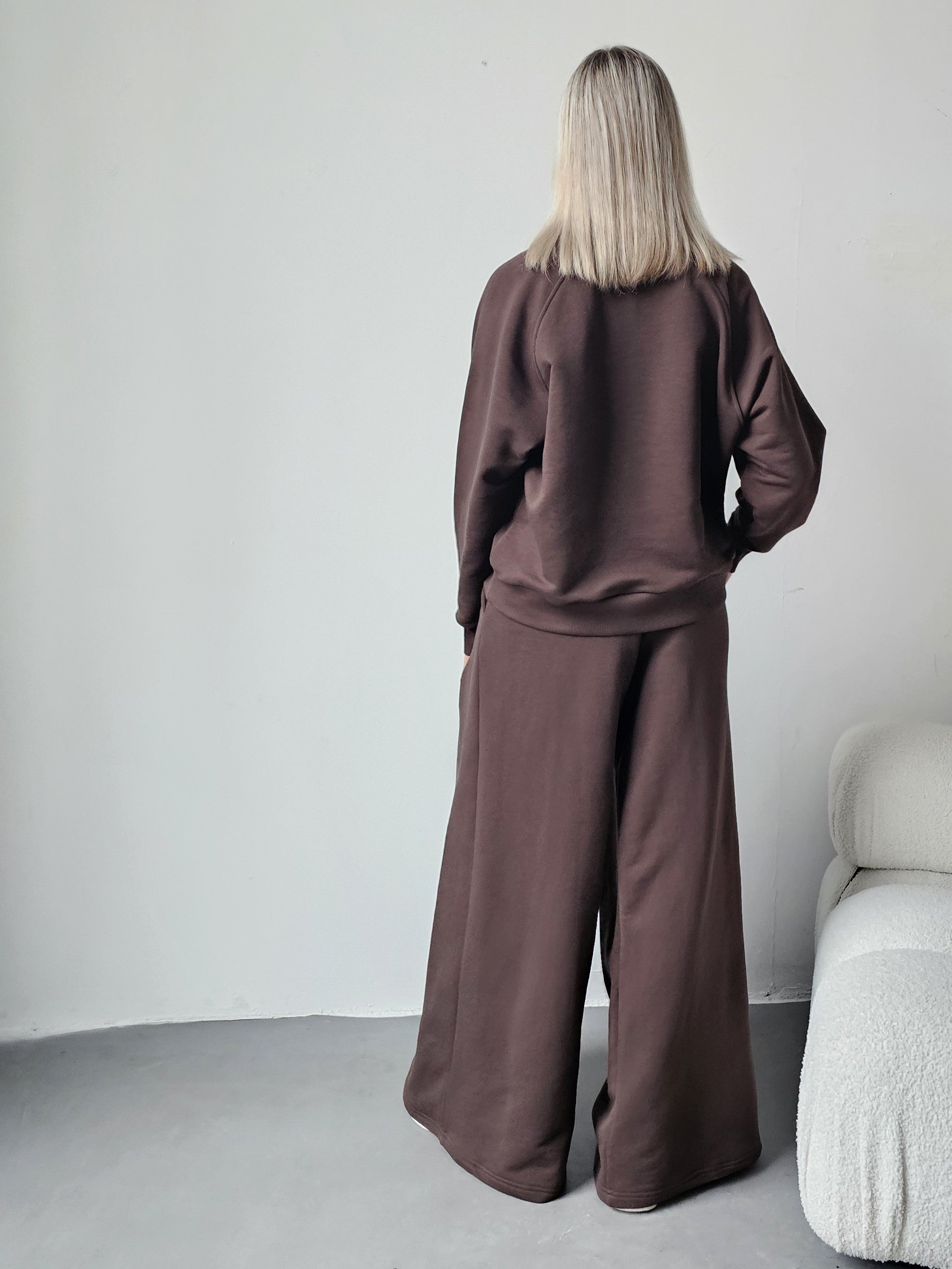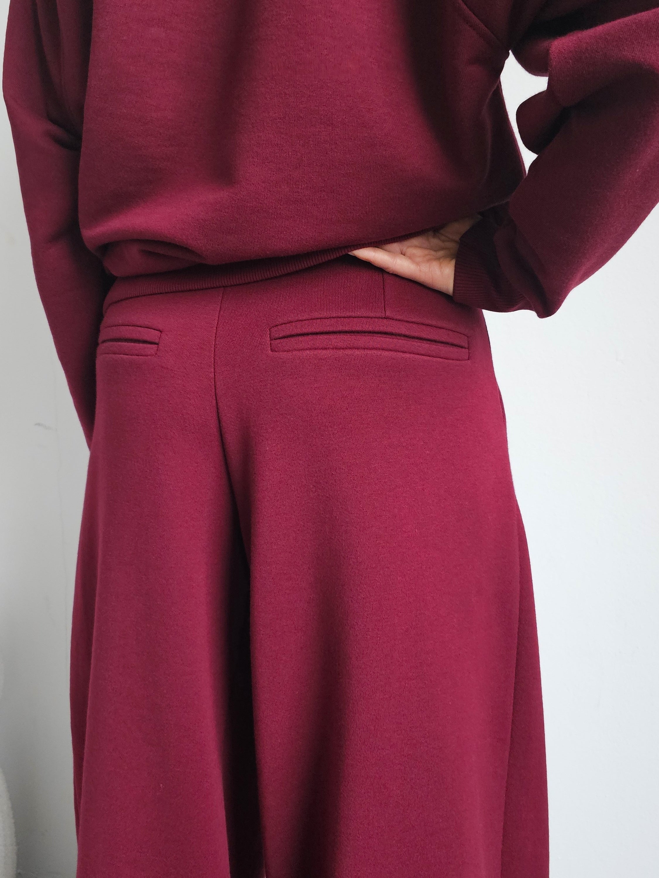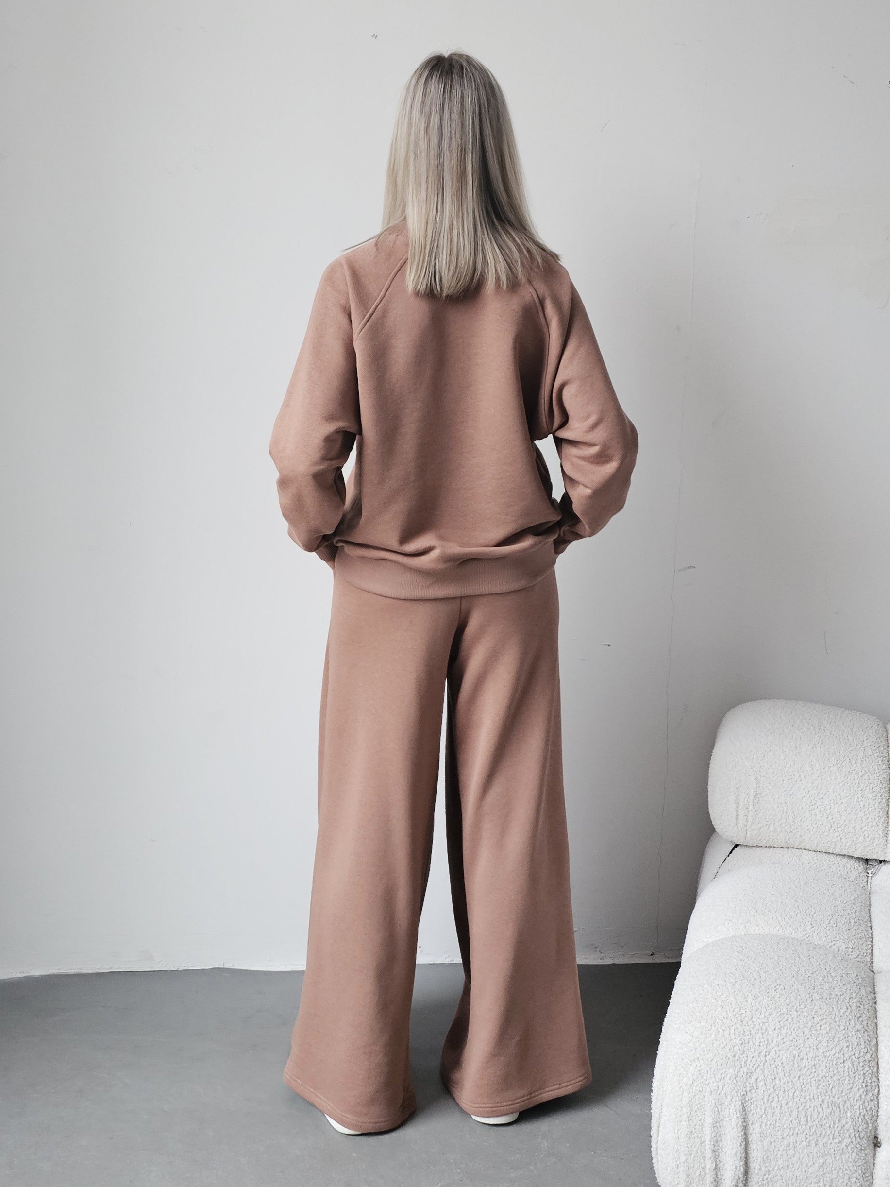 Sarai wygodny komplet bluza i szerokie spodnie z zakładkami