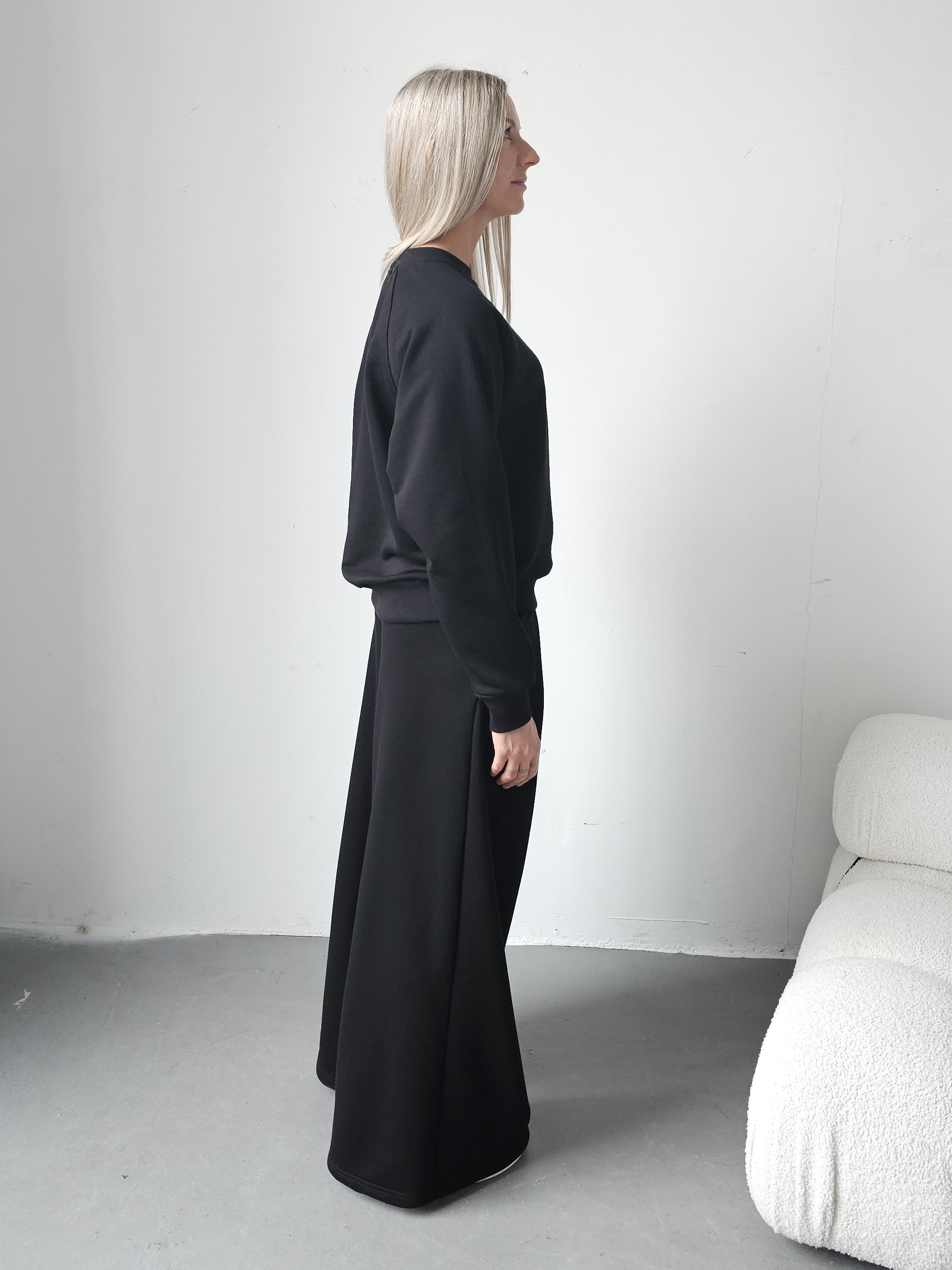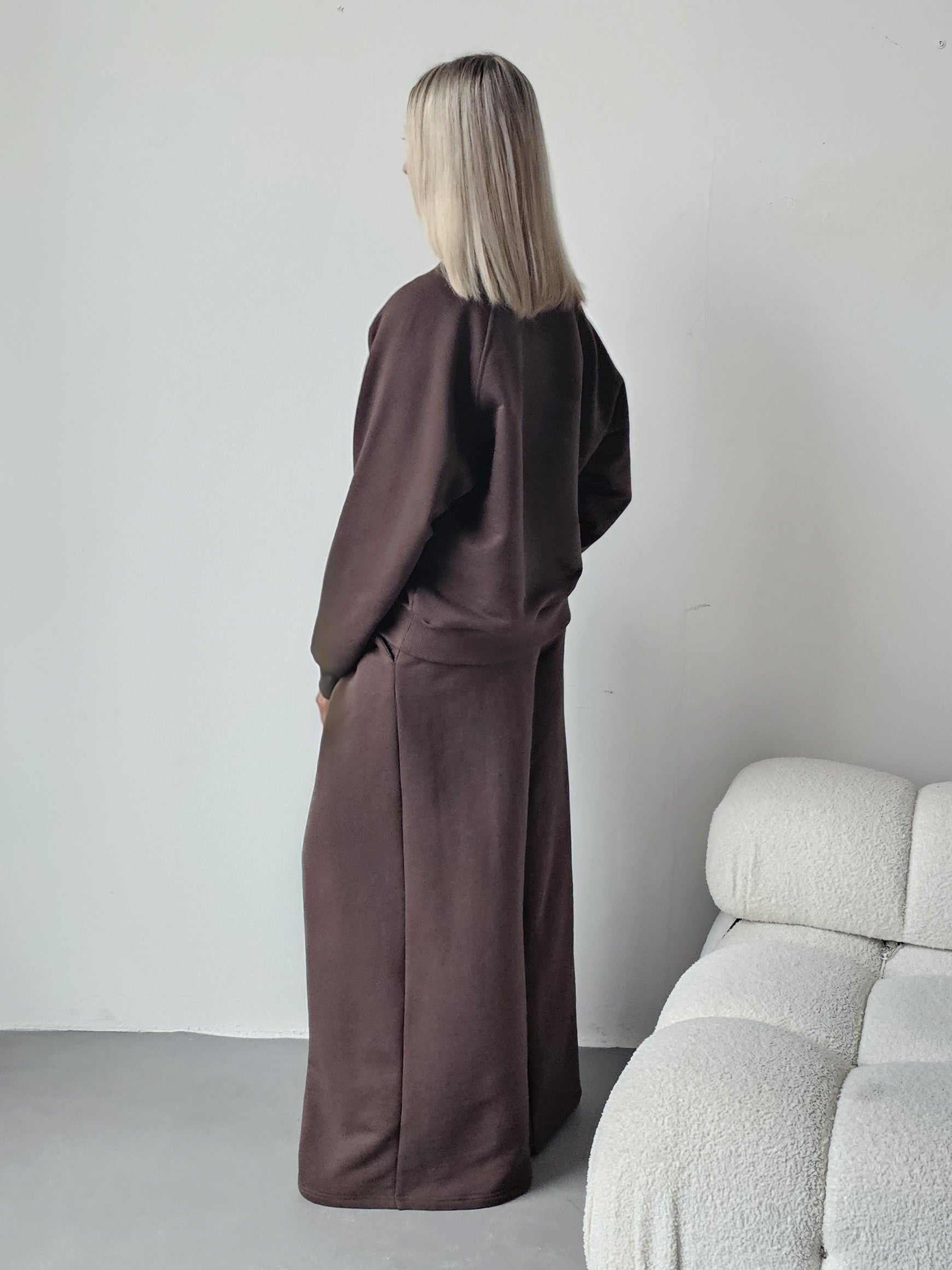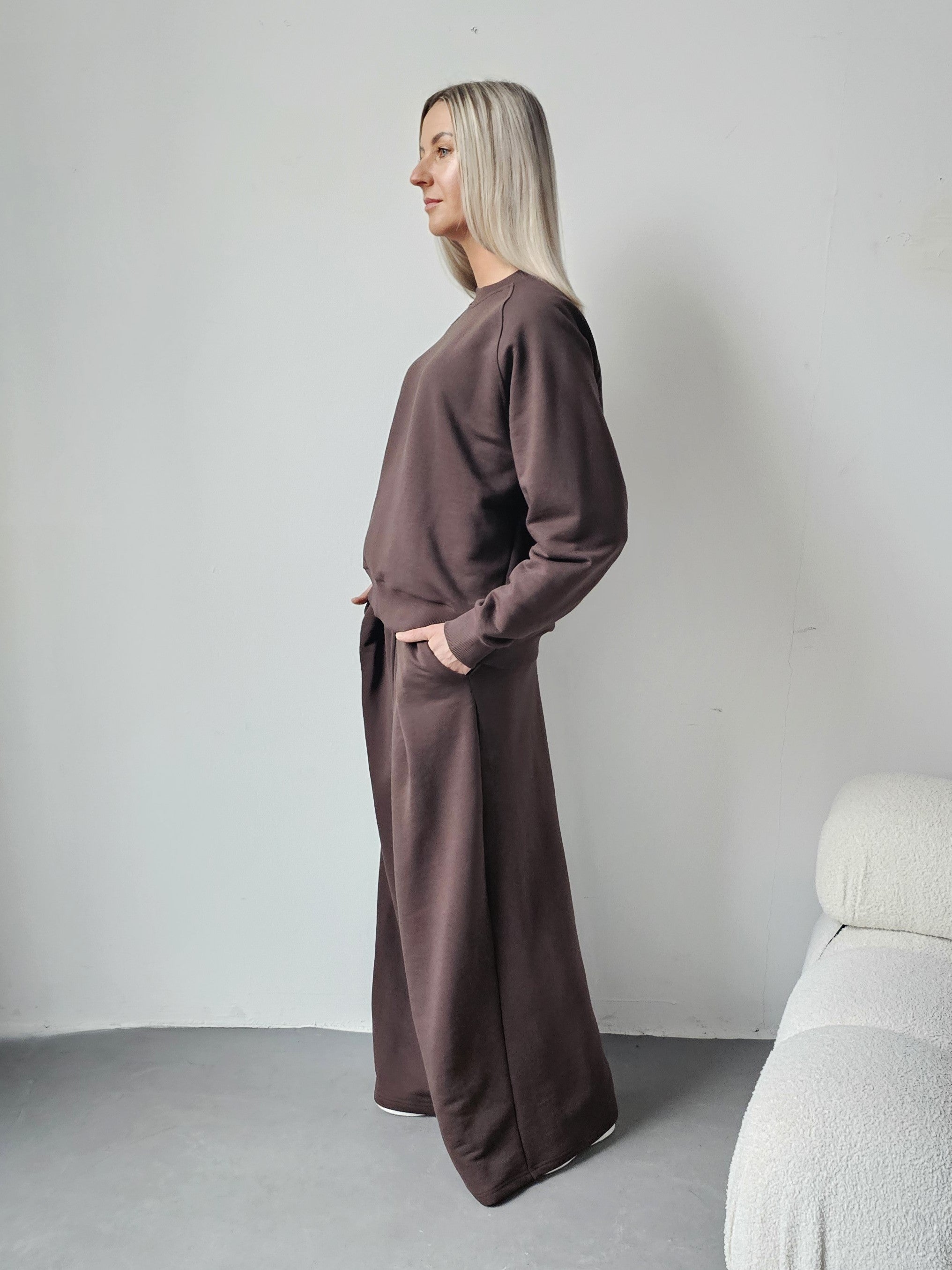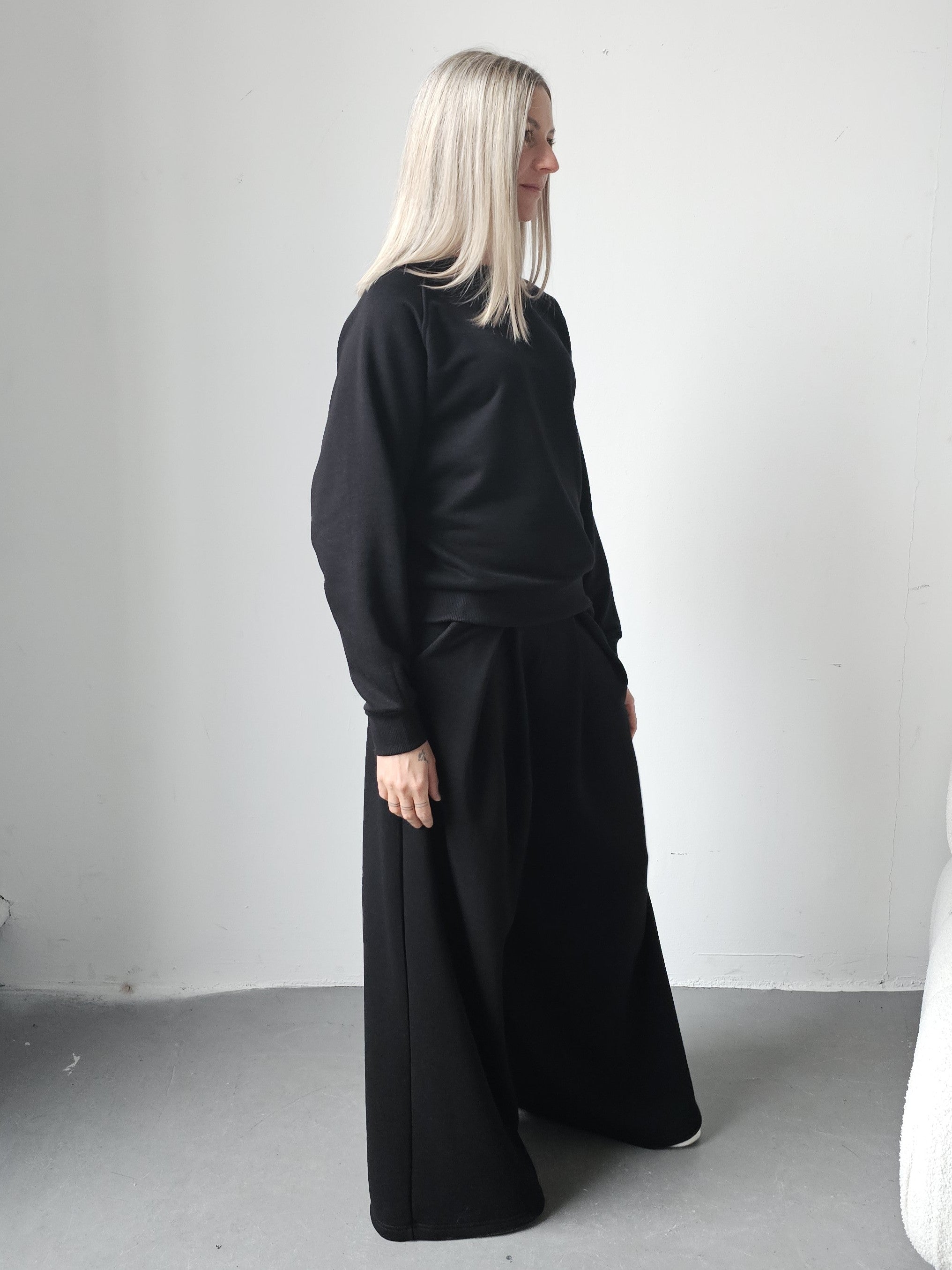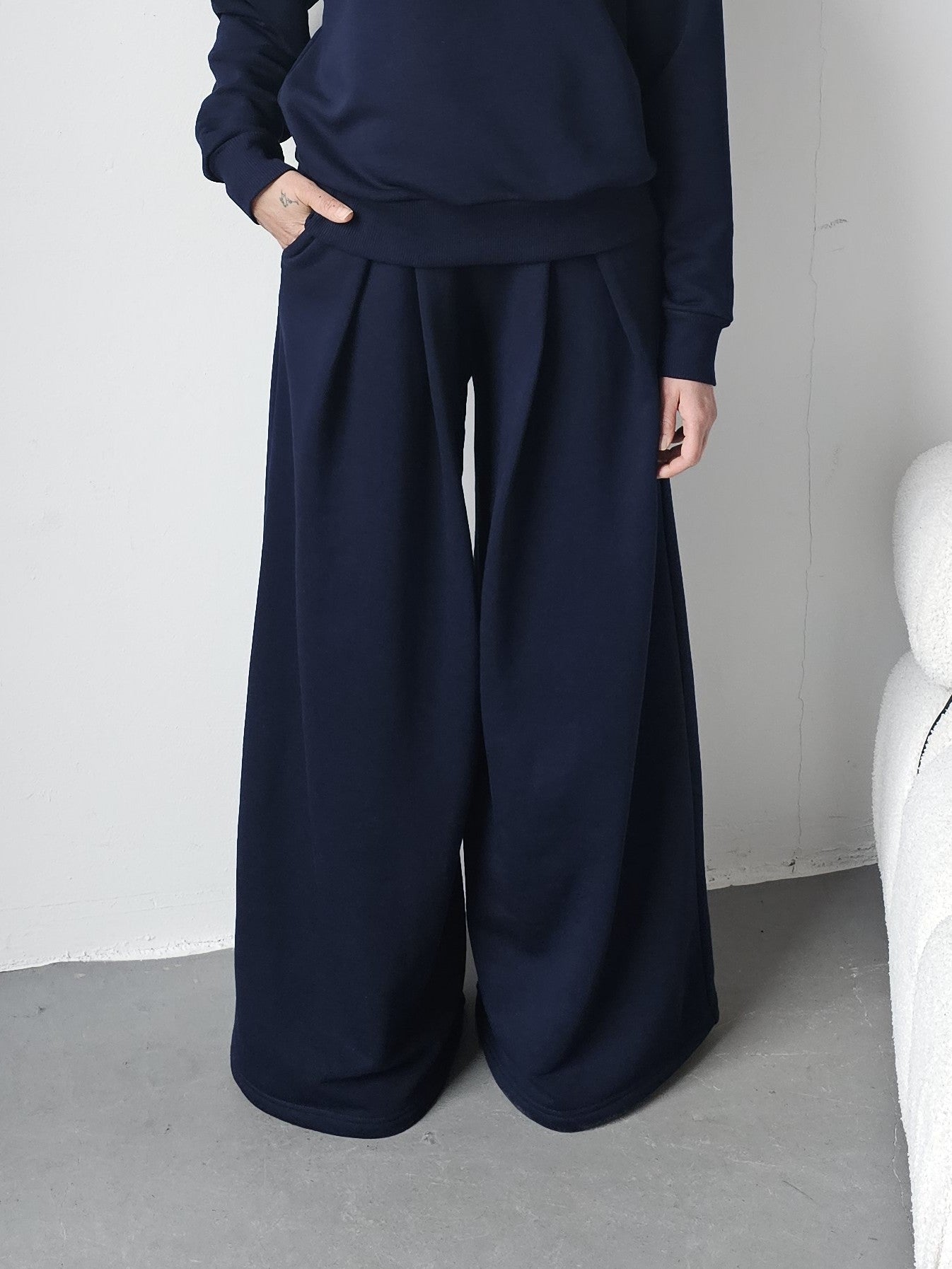 Sarai wygodny komplet bluza i szerokie spodnie z zakładkami