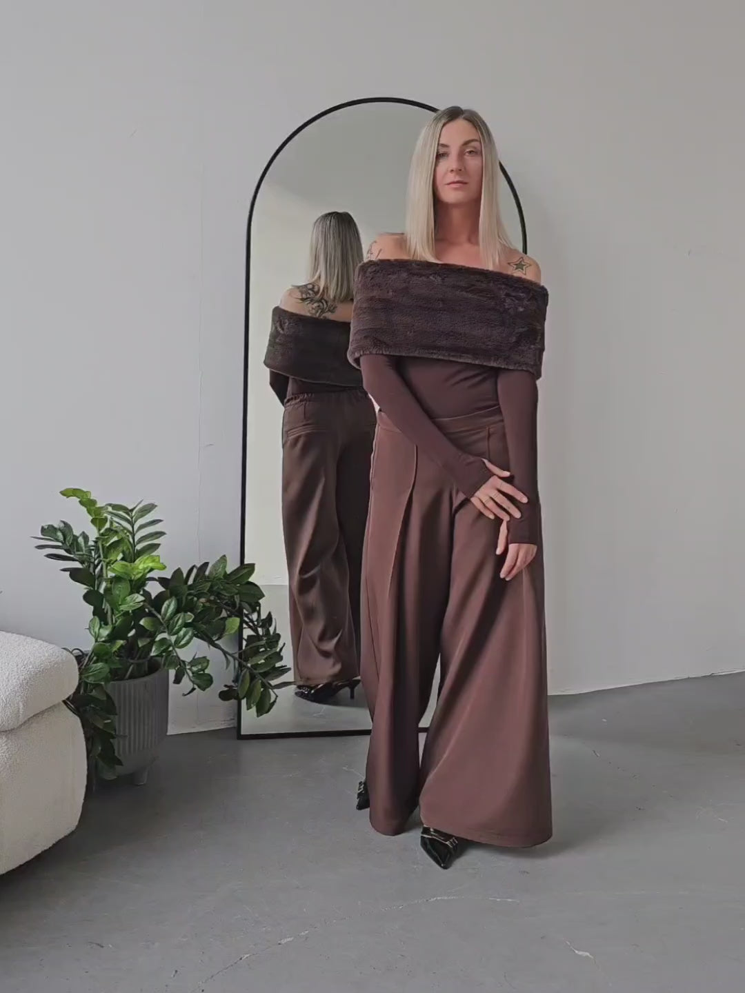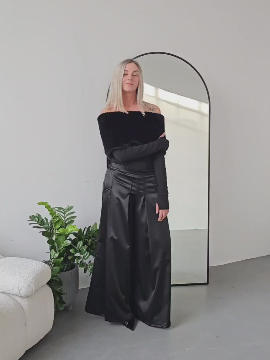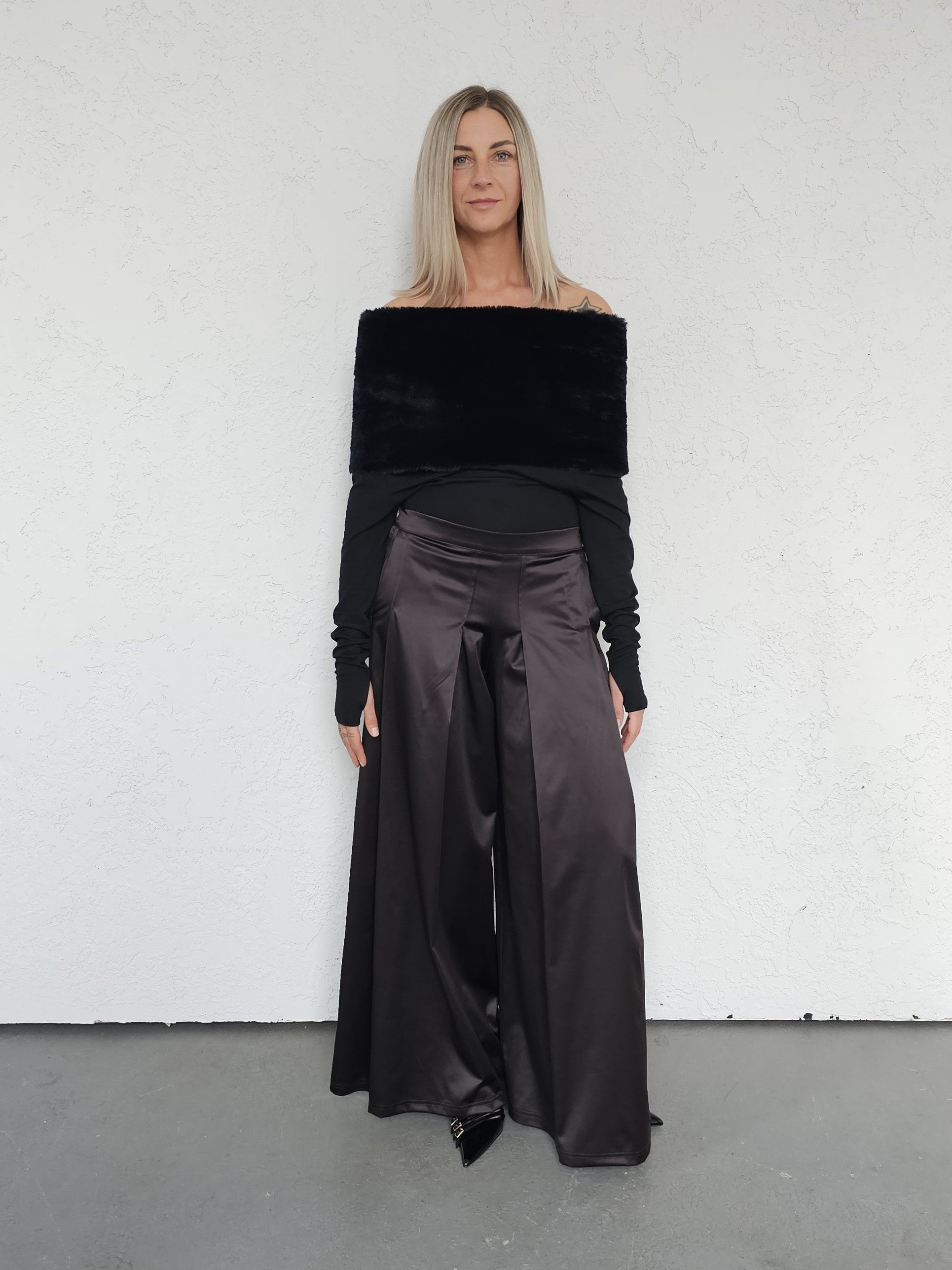 • OPIS PRODUKTU- Damara to top z sztucznym futrem o krótkim włosiu, który jest aksamitny i przyjemny w dotyku. Top pozwala odkryć ramiona. Rękawy mają opcję rękawiczek co widać na zdjęciach. Rękaw można nosić także klasycznie. Top jest elastyczny i dopasowuje się do sylwetki.