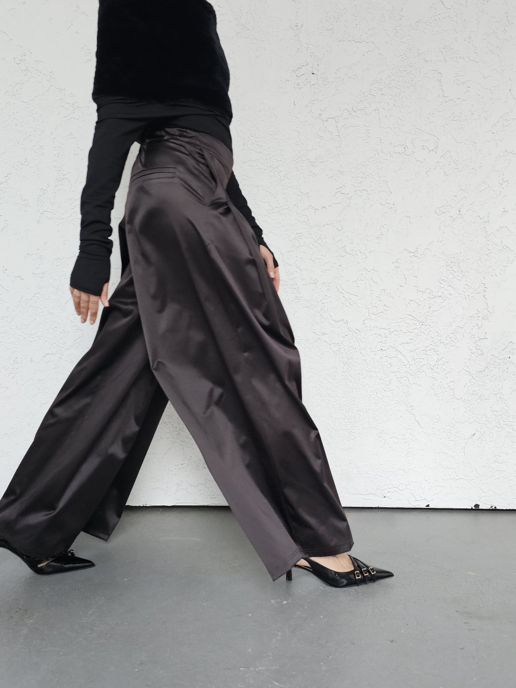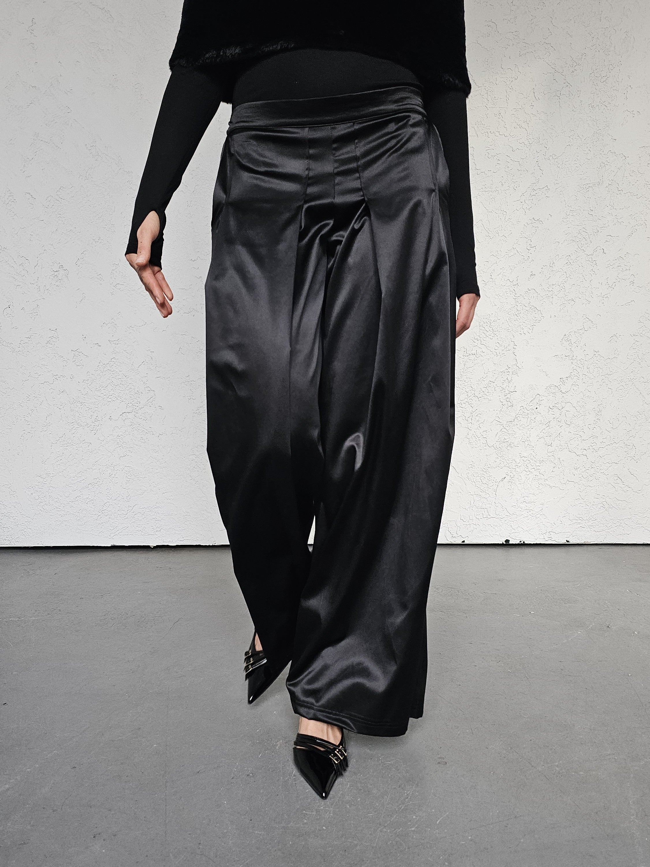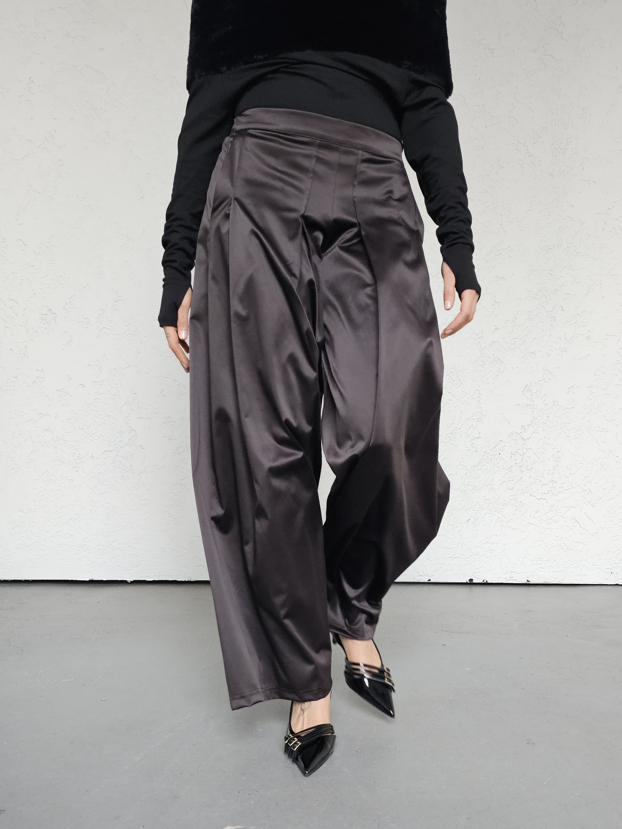 Imani satynowe spodnie o szerokim kroju z zakładkami